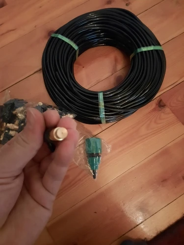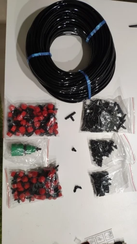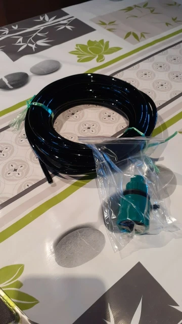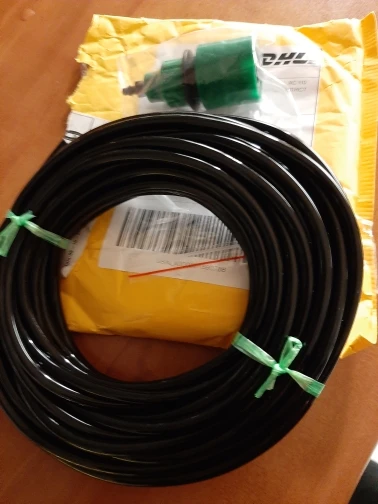 The order went more than a month. The hose is very narrow, such a small roll, thought there was no 40 m there. But it recirculated and exactly 40 m. There’s an adapter too. So that’s all right!