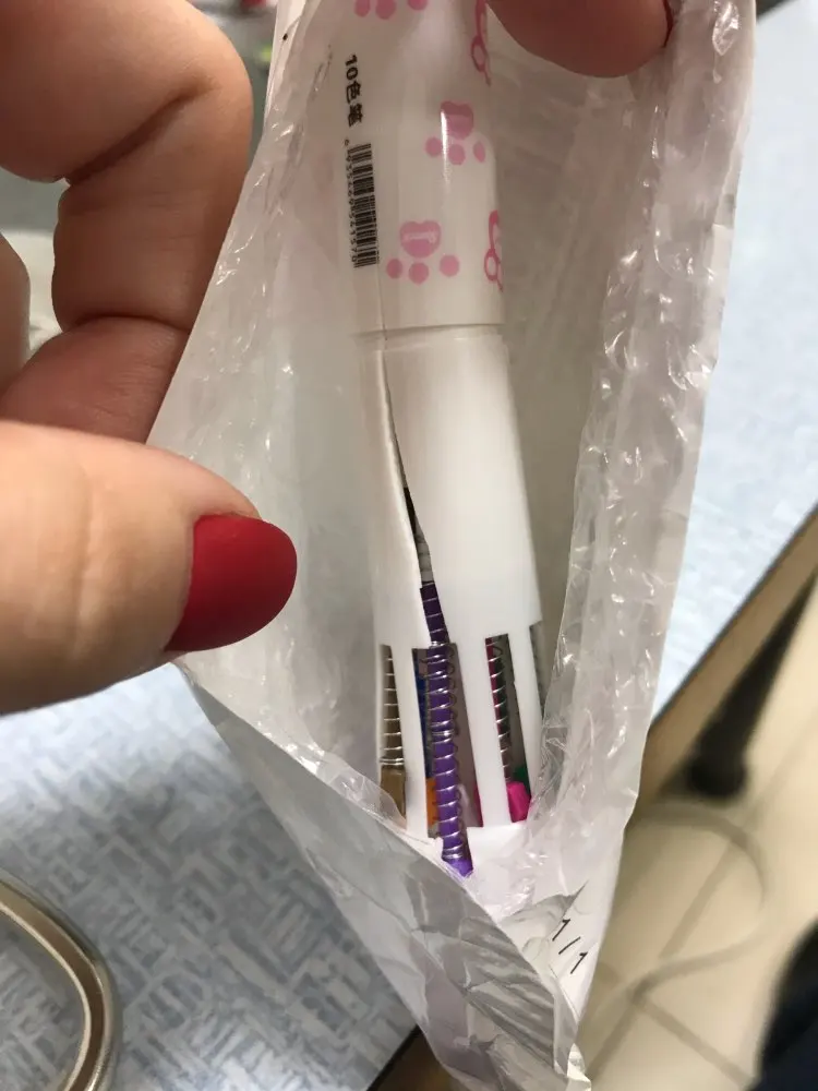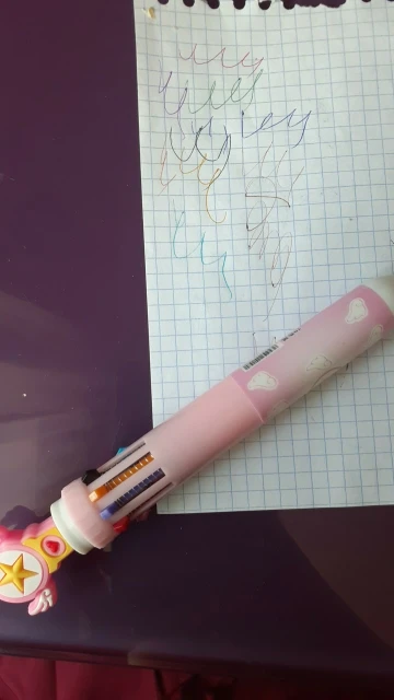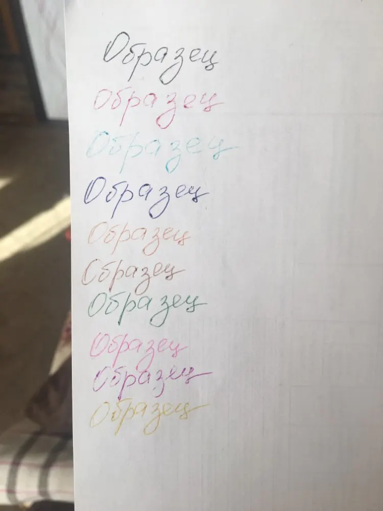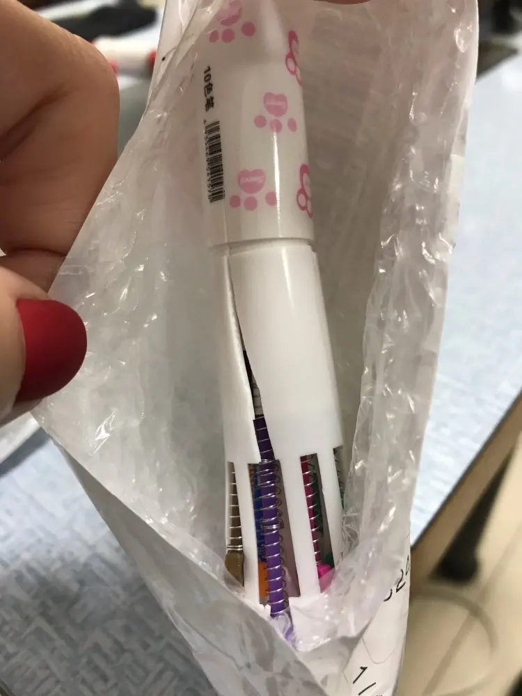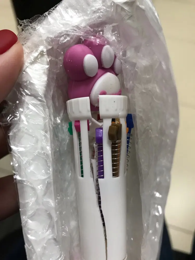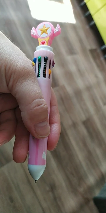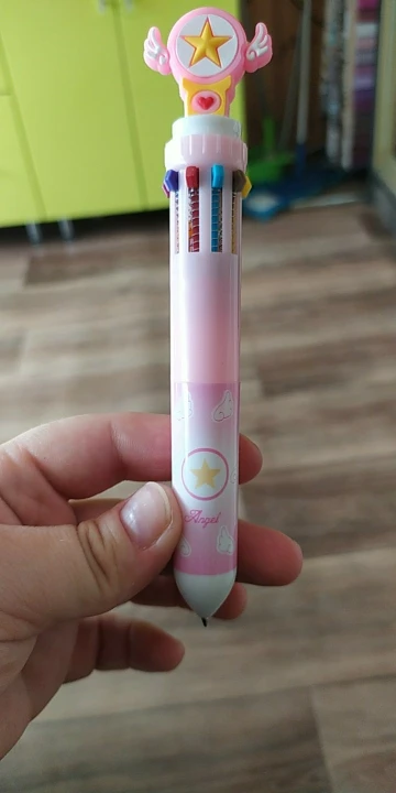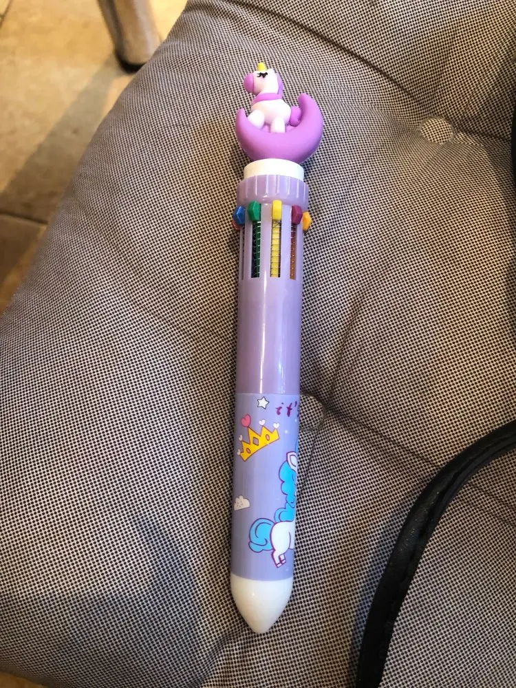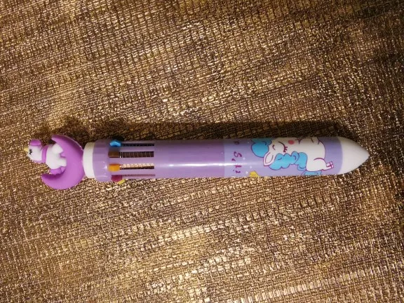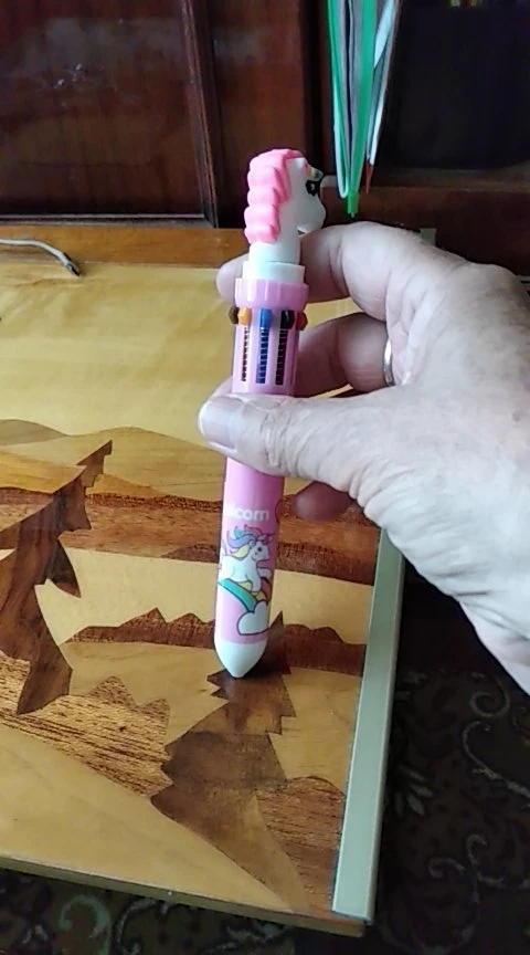 Nice pen. 10 colors. Everybody writes. Bright enough. An adequate price for such a pen. Funny unicorn head. No foreign smell. In the Vologda region, the parcel came within five weeks. Packed in bulk packing. No damage. Seller good.