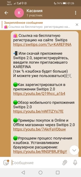 регистрацию на сайте Switips (логин пригласившего KAREFINA)