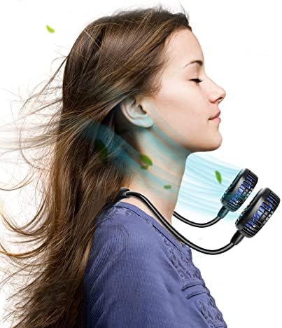 ✔️【Arms-free Design】The ergonomic neck design matches your neck completely, the 360° bendable dual-head fan means that you can regulate the airflow angle as you want, and hanging in your neck means that you can really free your fingers.