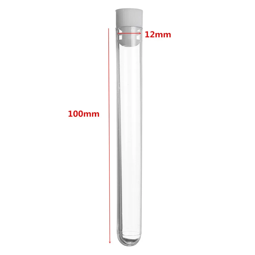 Specification: 100pcs / new prime quality plastic check tube 12mm * 100mm clear plastic check tube with lid laboratory provides