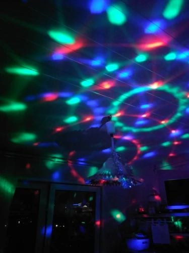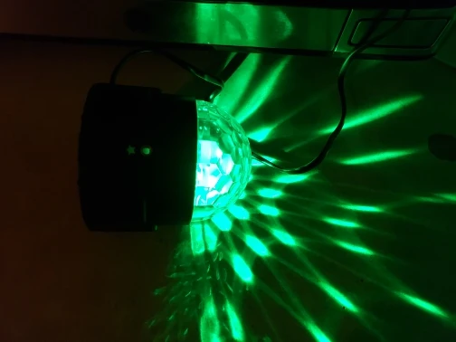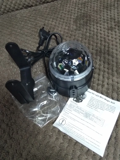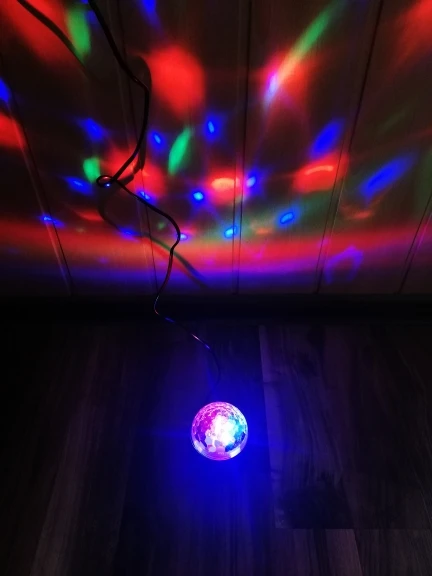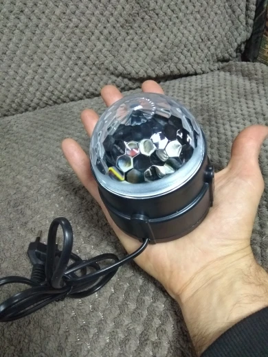 Disco Ball liked, the cost corresponds. There is a small sound when rotating the motor inside. Lack, no switch. And did not understand he reacts to the sound or not, like something is when right next to the speaker. It turned out that there are options of the same ball, but with a remote and several modes, for the same cost. This one without, did not look. Delivered in three weeks.