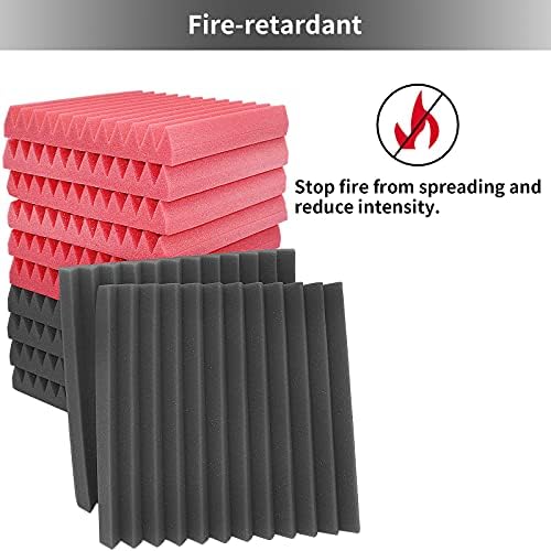 12 Pack Acoustic Foam Panels,2″ X 12″ X 12″ Acoustic Panels,Wedges Sound Proof Foam Panels,Studio Foam for Partitions Sound Absorbing Panels,Sound Proof Padding,for Dwelling Studio Ceiling(Black+Crimson)