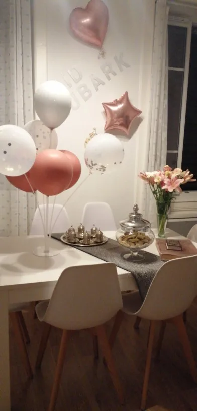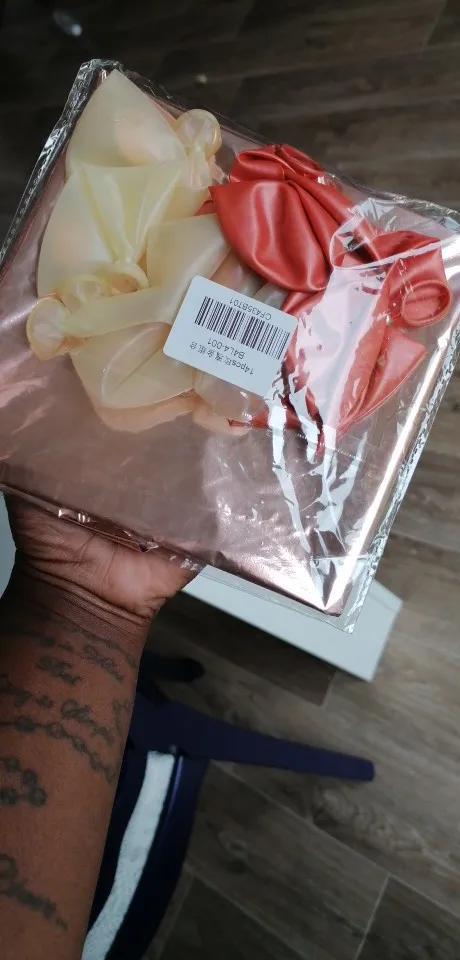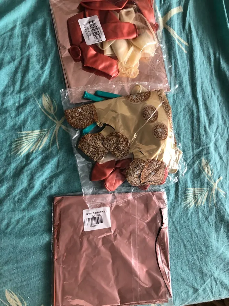 Complete Kit thank you to the seller! Received in 18days very pretty I recommend! ATTENTION balloons prettier in real life, depending on the lighting or the quality of the laptop the color changes! In the photos it seems Orange but no it’s pink chrome! I love