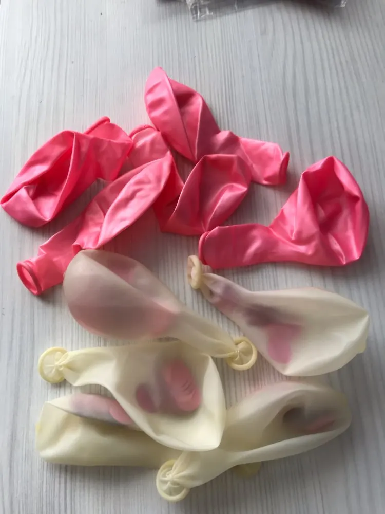 Заказ пришёл через месяц после оплаты. Все шары на вид целые. В одном пакете пришли два заказа. Розовые и золотисто розовые шары. Пакет был разрезанным.