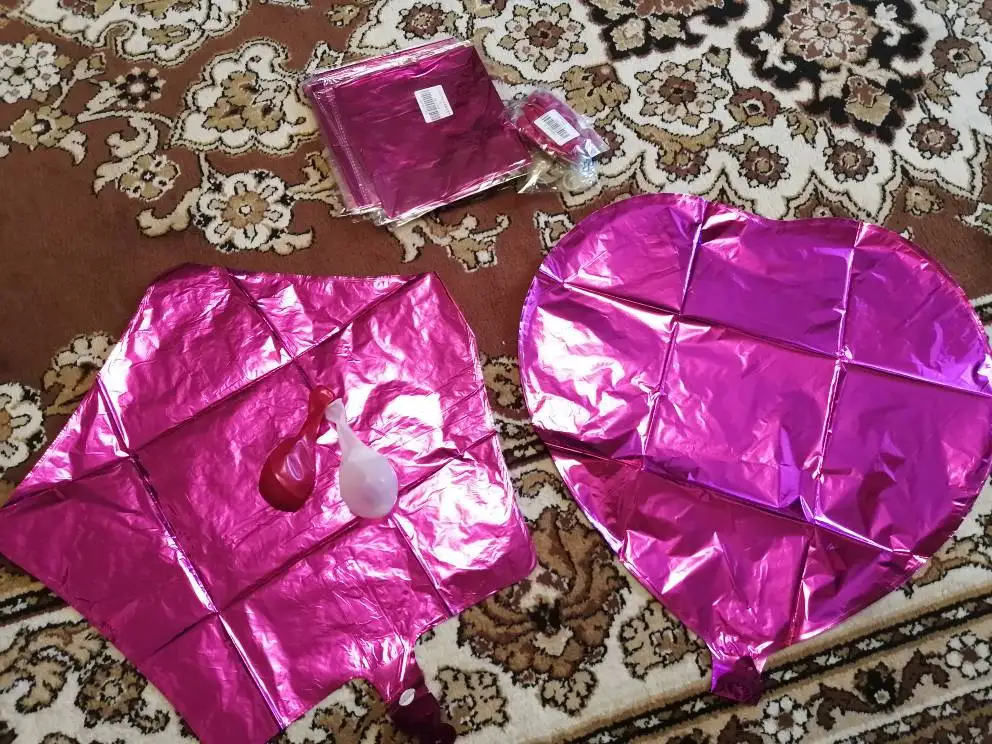 2. includes 2 stars, 2 Hearts, 5 pink latex balloons and 5 transparent with confetti. Foil balls are very big and wonderful, in color 1 in 1 as in the picture, pink latex balloons are not so color if foil match my expectations and bright pink, then latex-crimson color.