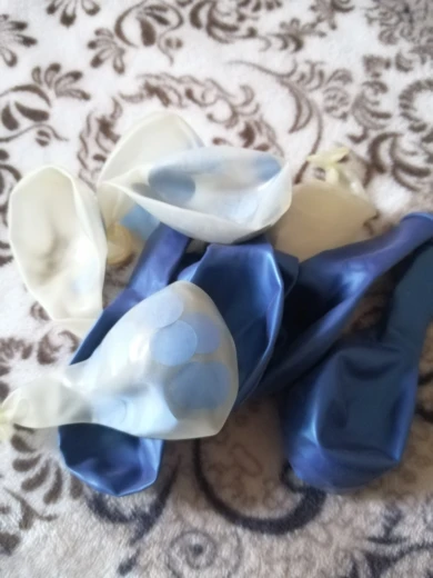 Very good set of balls, came all whole. foil balls are large, somewhere 44/44 cm. Color bright, ordinary blue balls, with Pearl. thanks to the seller, I recommend!