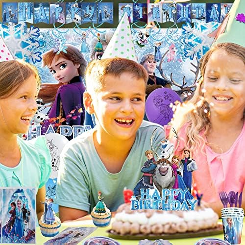 Bundle Included- Our social gathering decorations can be utilized for as much as 10 company, which might absolutely meet your wants. This social gathering pack incorporates :1pcs pleased birthday banner,1pcs backdrop(5*3ft),6pcs hanging swirls,2pcs aluminum movie balloons,20pcs balloons,10pcs present baggage, 10pcs Invitation card, 6pcs blowouts,10pcs cups,10pcs knives, 10pcs forks, 10pcs spoons, 10pcs 7inch plates, 20pcs paper napkins, 1pcs tablecloths, 1pcs cake topper, 24pcs cupcake toppers.