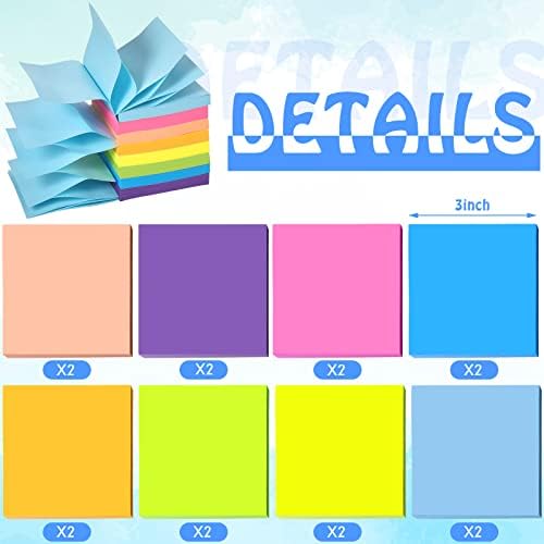 Plentiful Amount: you’ll obtain 16 packs of sticky notes in 8 colours, 2 items of every coloration, 100 sheets per pack, 1600 sheets in whole; Every sticky observe measures approx. 3 x 3 inches/7.6 x 7.6 cm; Plentiful amount and appropriate dimension can simply suffice your every day work and examine use and substitute calls for