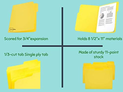 1InTheOffice Yellow File Folders Letter Dimension 1/3 Minimize, 3-Tabbed File Folders, Letter Dimension File, “24Pack”