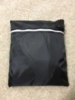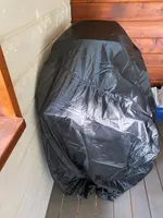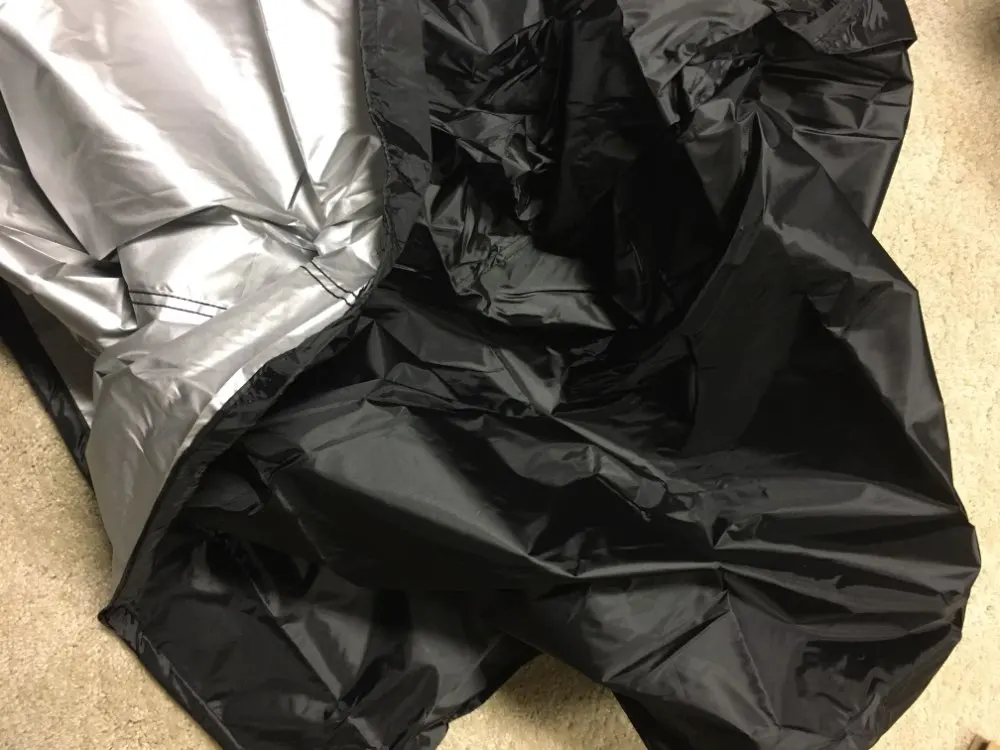 This is a full size grill cover that came in an attractive carrying case. It has a draw string for making it tight so the wind does not blow it off. Material is similar to a vinyl and seems to repel water. Overall, I am not sure how durable this will be to rips since it’s a somewhat thin material. It’s not as strong as a canvas cover, but is very economical.