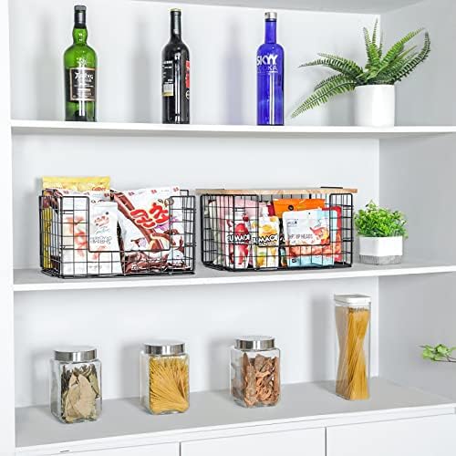 Stackable& Moveable: These wire baskets can be utilized alone or stacked on countertop to maximise storage and hold muddle away; wooden lid high add extra storage or used as a reducing board; handles make these baskets straightforward to hold round dwelling and workplace.