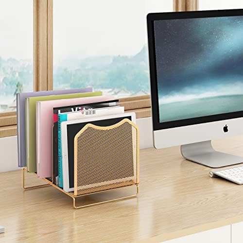 2 Pack-Easy Trending Mesh Desktop File Sorter Organizer, 5-Part Bookshelf for Desk Dwelling Workplace, Golden Yellow