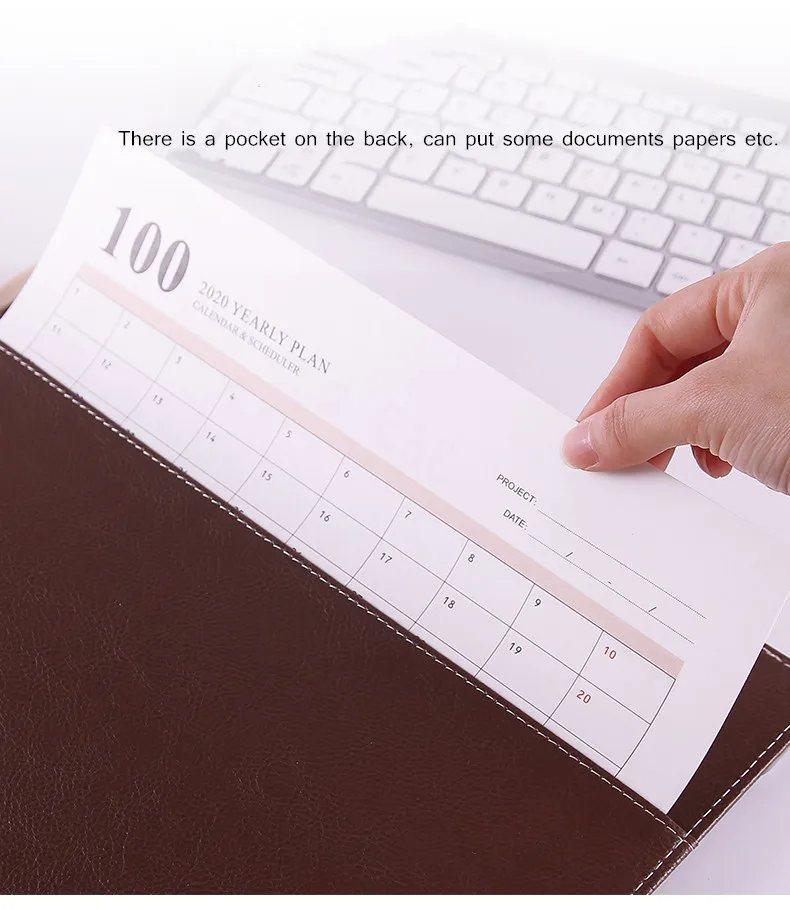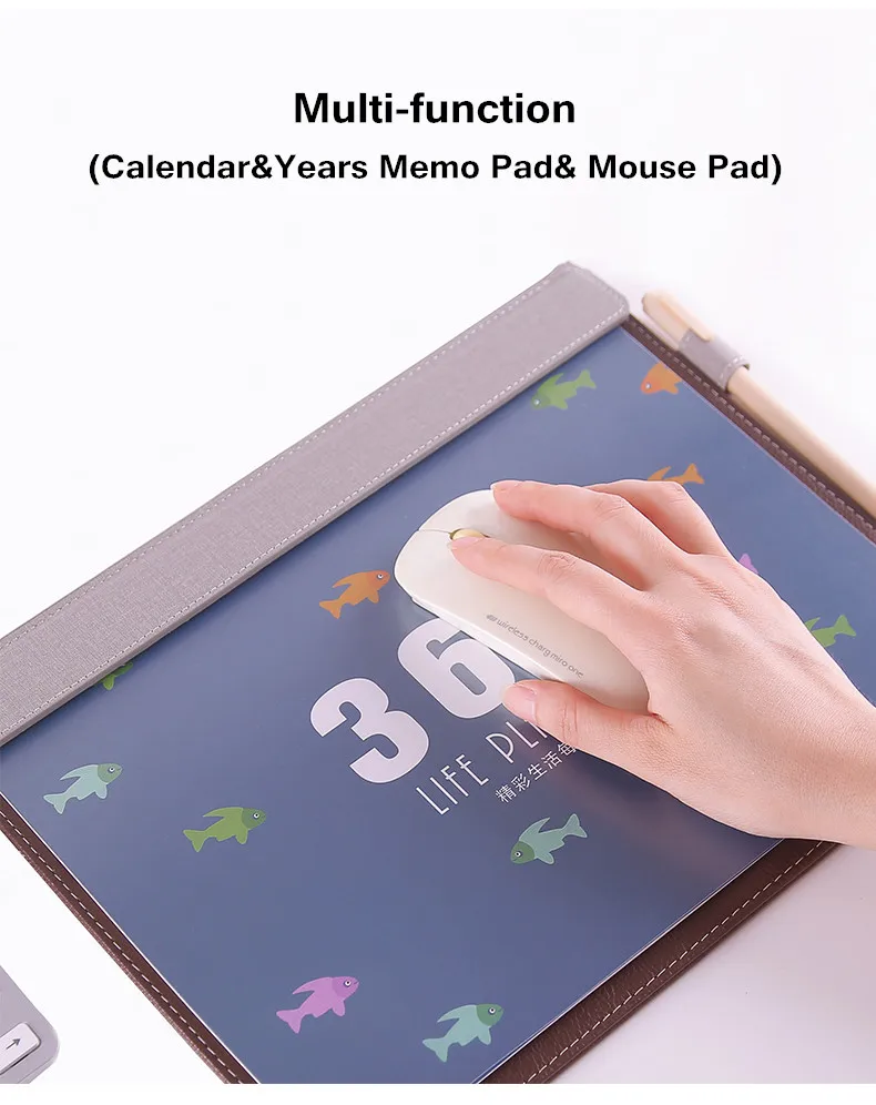 Specification: 2020.7-2021.12 Sharkbang Artistic PU Multi-functional 365 Days Desktop Years Calendar Agenda & File Folder Mouse Pad Stationery
