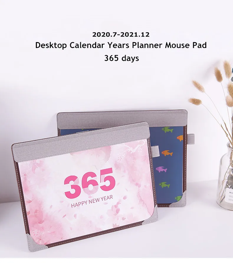 2020.7-2021.12 Sharkbang Artistic PU Multi-functional 365 Days Desktop Years Calendar Agenda & File Folder Mouse Pad Stationery