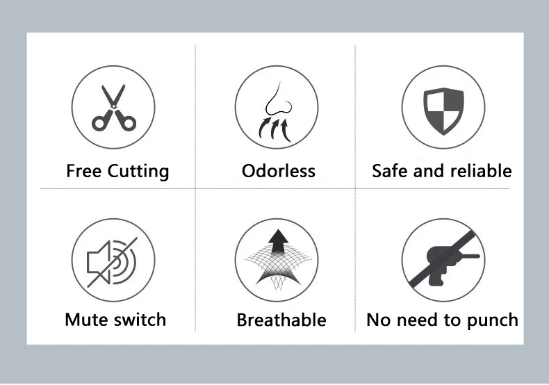 The product may be minimize freely, environmentally pleasant and odorless, protected and dependable, the swap is silent, breathable and comfy, and no punching is required.