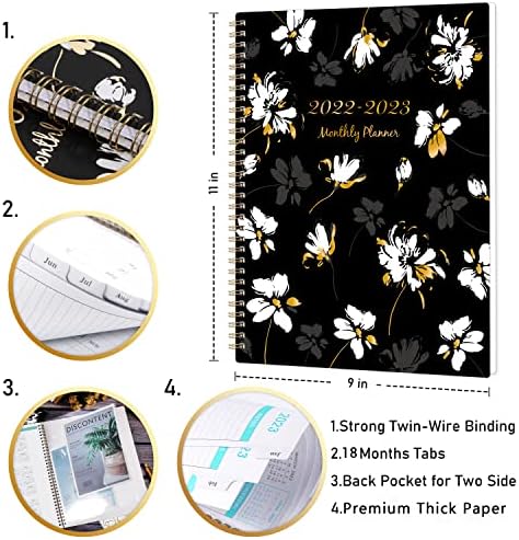 π¦2022-2023 Month-to-month Planner β Giant planner covers 18 months from July 2022 to December 2023. Pages measure 9β³ x 11β³, an ideal dimension in your briefcase or at your desk. Stunning floral cowl makes this month-to-month planner extra distinctive, sturdy and powerful golden twin-wire permits lay-flat orientation to create an enduring planner.