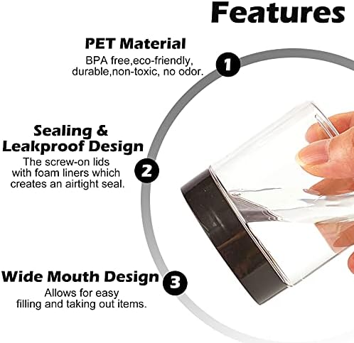 Bundle content material: Comes with 24pcs 4ounces clear plastic jars with screw-on black lids and leak-proof gasket liners and 24 items personalized labels