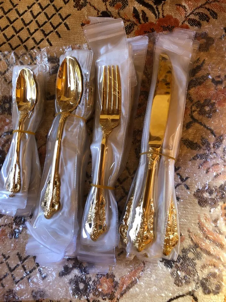 14 reviews for 24Pcs/set Luxurious Silver Gold Cutlery Set Dinnerware Flatware Set Tableware Silverware Dinner Fork Knife Spoon Drop Delivery