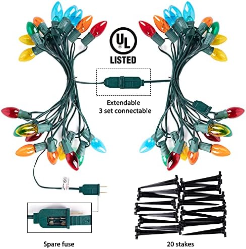 Be the first to review “25.7 Toes C9 Christmas Pathway Lights with 20 Multicolored Bulbs and 20 Stakes Waterproof Connectable Walkway Lights for Out of doors Yard Vacation Sidewalk Driveway Christmas Ornament Present, Inexperienced Wire”