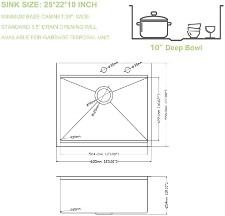 The singel bowl kitchen sink is featured with heavy obligation paint undercoating and thick rubber pads to reduce noise and cut back condensation to guard the cupboard | Sloped backside with X grooves to permit full water drainage | | R10 Tight Radius spherical corners for simple cleansing whereas on the similar time retaining the resolutely trendy look.