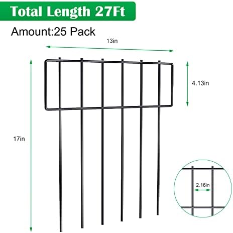 25 Pack Animal Barrier Fence, 17in(H) X 27ft(L) Ornamental Backyard Fencing, Rustproof Metallic Wire Backyard Fence Border, Canine Rabbits Floor Stakes Defence Fence for Outside Panorama Patio, T Formed.