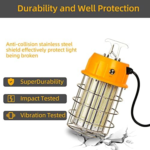 250W Short-term LED Work Mild, CiiReeH Transportable Hanging Building Work Lamp for Workshop Mine Job website Storage Indoor with Stainless Metal Protect and Hook, Plug and Play 5000K 35000 Lumens