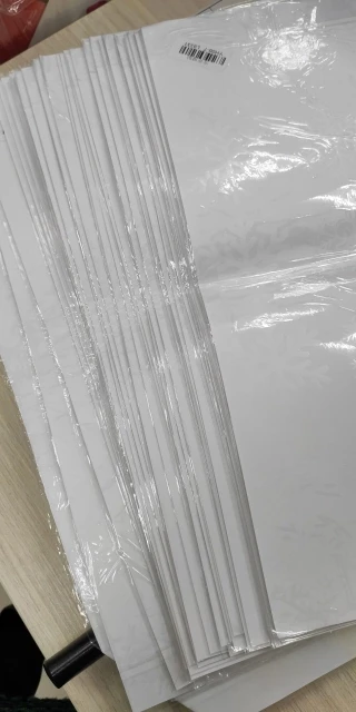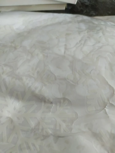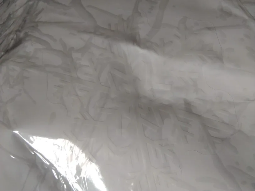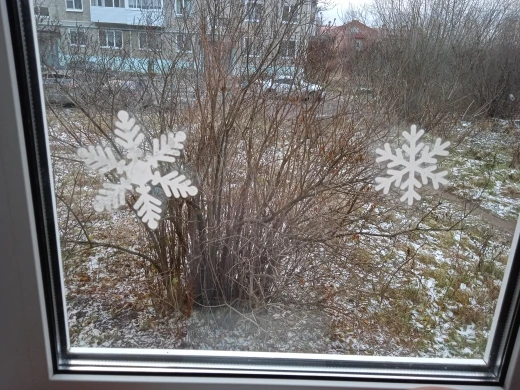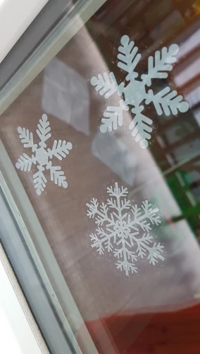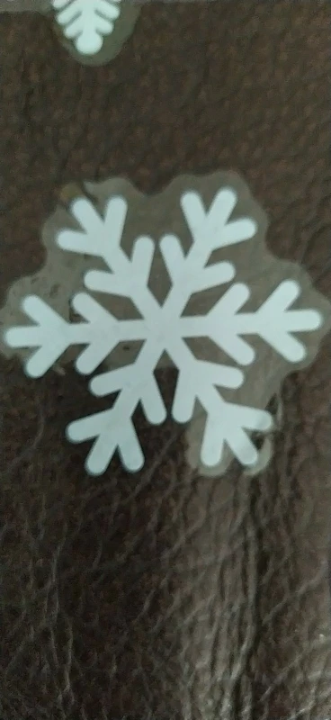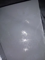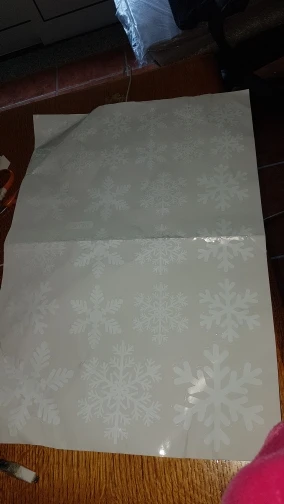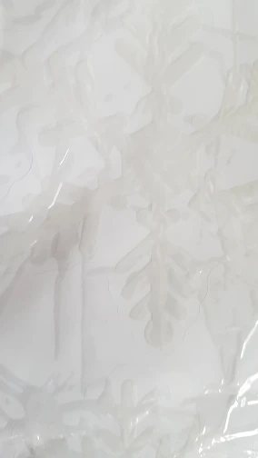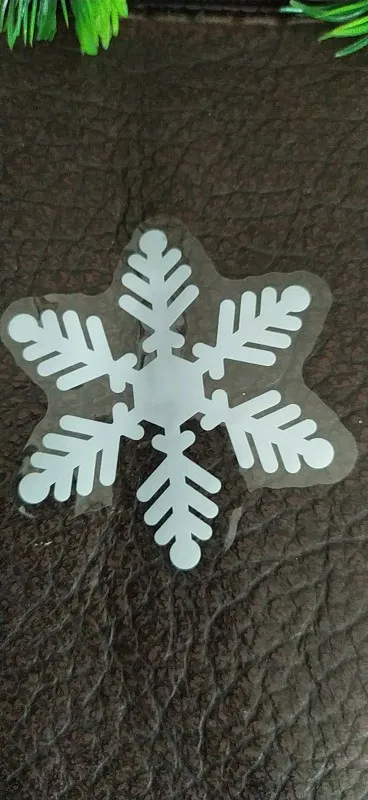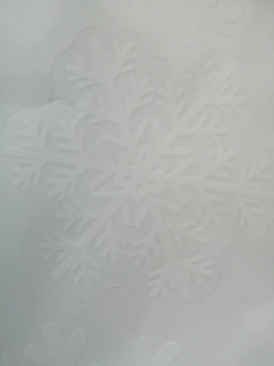 Stickers are excellent, I take it again. Many once at the expense of its composition. Unglued without problems, leaving no traces. Someone attaches them to the water-I already get it without problems. To the touch, as silicone-glued without bubbles and uneven. This time they packed not quite neatly, the sheet is all in the creases (before that came on the roller), but the stickers were not affected. Plmat the sheet itself, and on the snowflakes when sticking these creases and it will not be visible-the material is subdued. I managed to take the shares, within 100 rubles. Very successful purchase. I did not glue it for the photo. Snowflakes are white, around the pattern is a transparent contour. On the sheet it looks not presentable, but in fact good.
