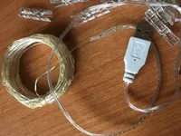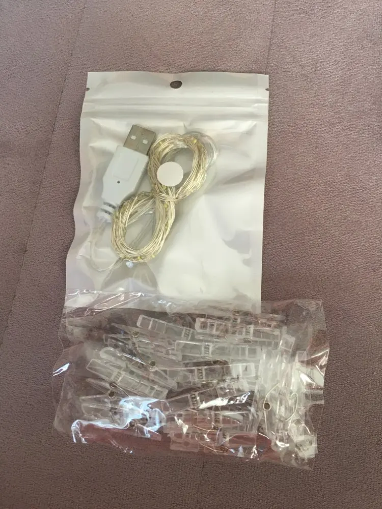 гирлянда пришла в Польшу в течение 2 месяца и три дня , светит отлично , хотя могло быть и лучше , подключить можно к блоку от зарядного устройства, длина прищепок 3,3 см на 0,5 см . ВСЕМ СОВЕТУЮ .