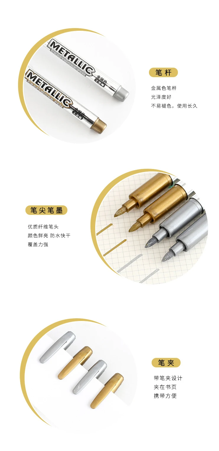 Specification: 2pcs/lot DIY Metallic Waterproof Everlasting Paint Marker Pens Gold And Silver For Drawing College students Provides Marker Craftwork Pen