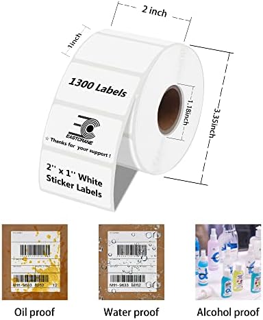 2”x1” Label Stickers, EastCrane Clean Thermal Labels with Adhesive, Small Sticker Labels for Recordsdata Package deal Envelope Product Tag, Appropriate with Rollo, Zebra Desktop Printers-1 Roll, 1300 Labels