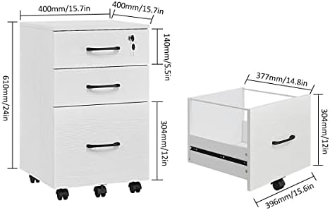 3 Drawer Wooden Cellular File Cupboard, Below Desk Storage Drawers Small File Cupboard for Dwelling Workplace (White)