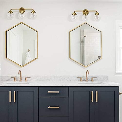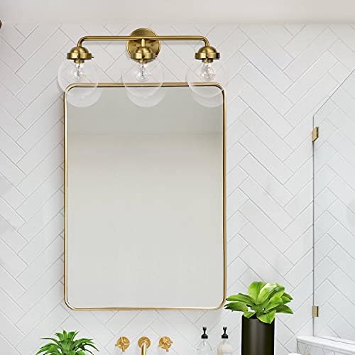 Be the first to review “3-Mild Rest room Self-importance Mild Fixture Vintage Brass Wall Mild with Globe Clear Glass Shades for Rest room Self-importance Room Powder Room”