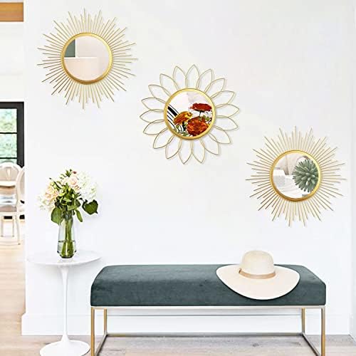 3 Pack Gold Mirrors for Wall Metallic Sunburst Wall Mirrors Residence Décor Ornamental Hanging Wall Artwork for Dwelling Room Bed room Entryway (16 in, Gold)