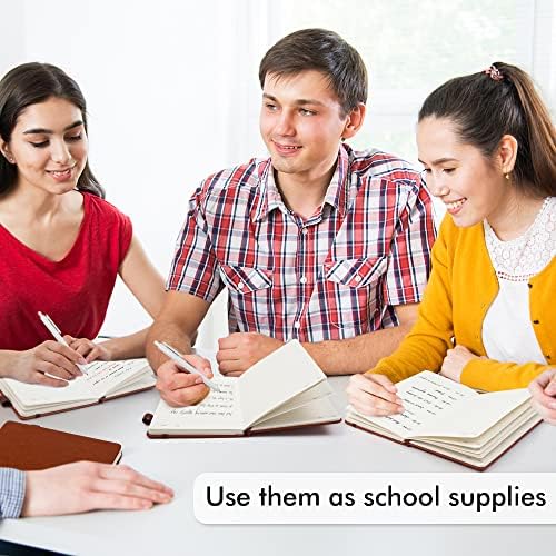 Feela 3 Pack Traditional Dominated Notebooks accommodates 3 traditional brown dominated sturdy cowl notebooks and three Black Retractable Pens. Every of the notebooks measures 8.3” x 5.1”, which is ideal to hold and simply held by younger women and boys. These black cute pens are custom-made to be positioned within the pen holder, which is fairly handy.