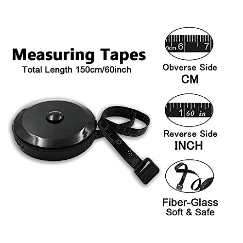 Bundle Embody:3 Pack Comfortable Retractable Black Twin Sided Tape Measure Physique Measuring Tape Set, Twin sided, 150cm/60inch in size, massive and clear markings in each Inches and CM for simpler studying, Retractable black measuring tape measurement 2 x 2 x 0.5 inches, weight 0.02 KG/0.7 OZ