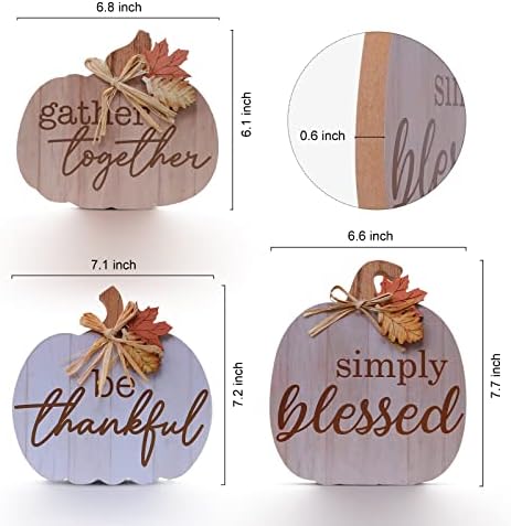 Distinctive Design: Fall Pumpkin wooden signal set is available in 3 distinctive fall colours, and the pumpkin handles characteristic fake maple leaves and straw bows. Subtle designs and a mixture of fall shades create layered, full of life, plump and enjoyable pumpkins. The three pumpkin thanksgiving desk decor are printed with “collect collectively”, “be grateful” and “merely blessed” letter, the wonderful printing know-how makes it not fade, making the clearly seen lettering on the pumpkin items troublesome to erase