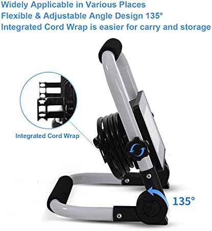PORTABLE, FOLDABLE & MULTI-DIRECTION ADJUSTABLE – Anti-slip deal with and light-weight makes with compact design is appropriate for slim area. Built-in wire wrap behind the lamp hepls to tidy up the wire so as. With none instruments, simply twist locking knobs or rotate hex nuts by hand, it may be simple folded and tilted to offering one of the best angle brightness your required. It is extremly versatile and splendid for extensively utility, building web site, automobile restore, warehouse, workshop, wall portray, and so on.