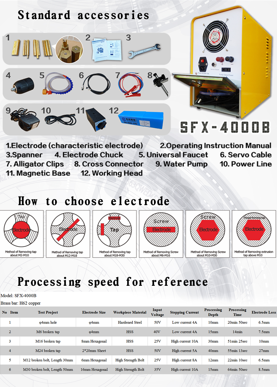 3000W SFX-4000B Moveable EDM Faucet Burner Faucet Eroder Damaged Faucet Elimination,Faucet Disintegrator Quick take away M2 to M48(Dia. 0.07in to 2 in) damaged Screw,drills,faucets, bolts from Blind Gap,Depth Setting