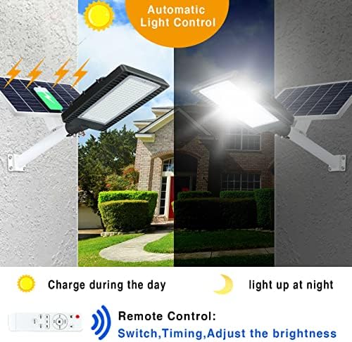 【Tremendous Shiny & Lengthy Working Time】This photo voltaic avenue gentle produces as much as 12000lm excessive brightness, gentle up an space of about 3000 sq. toes. It is really useful mounted in 9-19ft top. Constructed-in 48000mAh batteries, which is able to present over 3 evening lighting time after full charged.