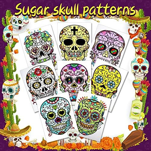 32 Items Day of The Useless Coloring Posters Sugar Cranium Paper Coloring Poster for Youngsters or Adults Halloween and Dia De Los Muertos Craft Portray Exercise