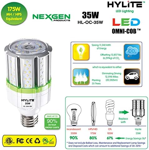 35W Excessive Efficiency LED Omni-Cob Lamp, 360º, (~175W HID), 50K, 4800 lm, 120~347V for Industrial Industrial Lighting Warehouse Excessive Bay Gentle Fixture Storage Workshop