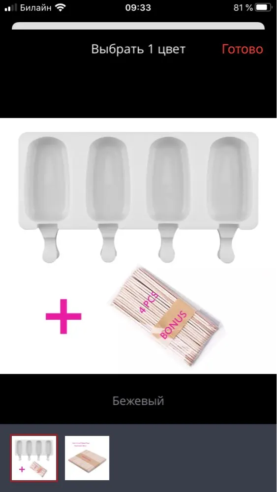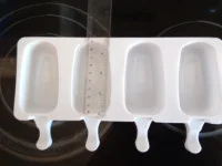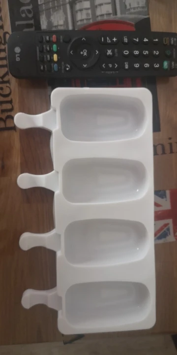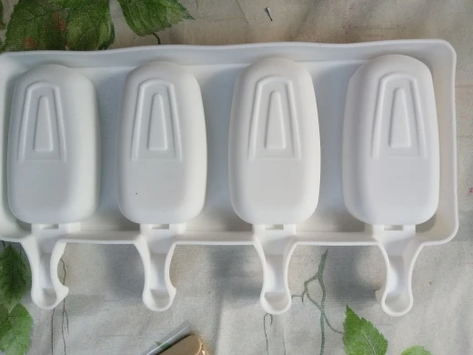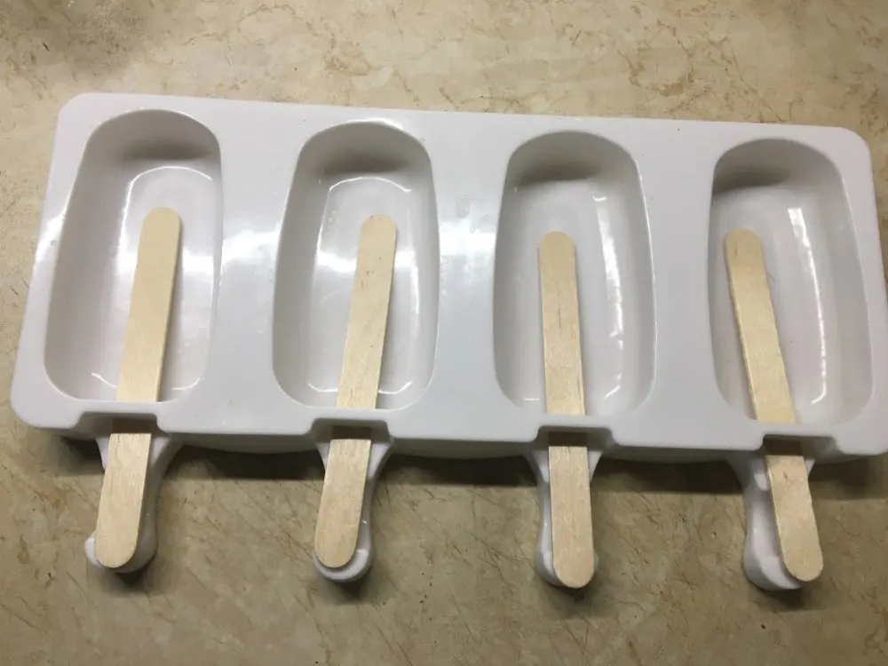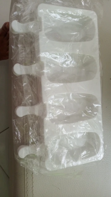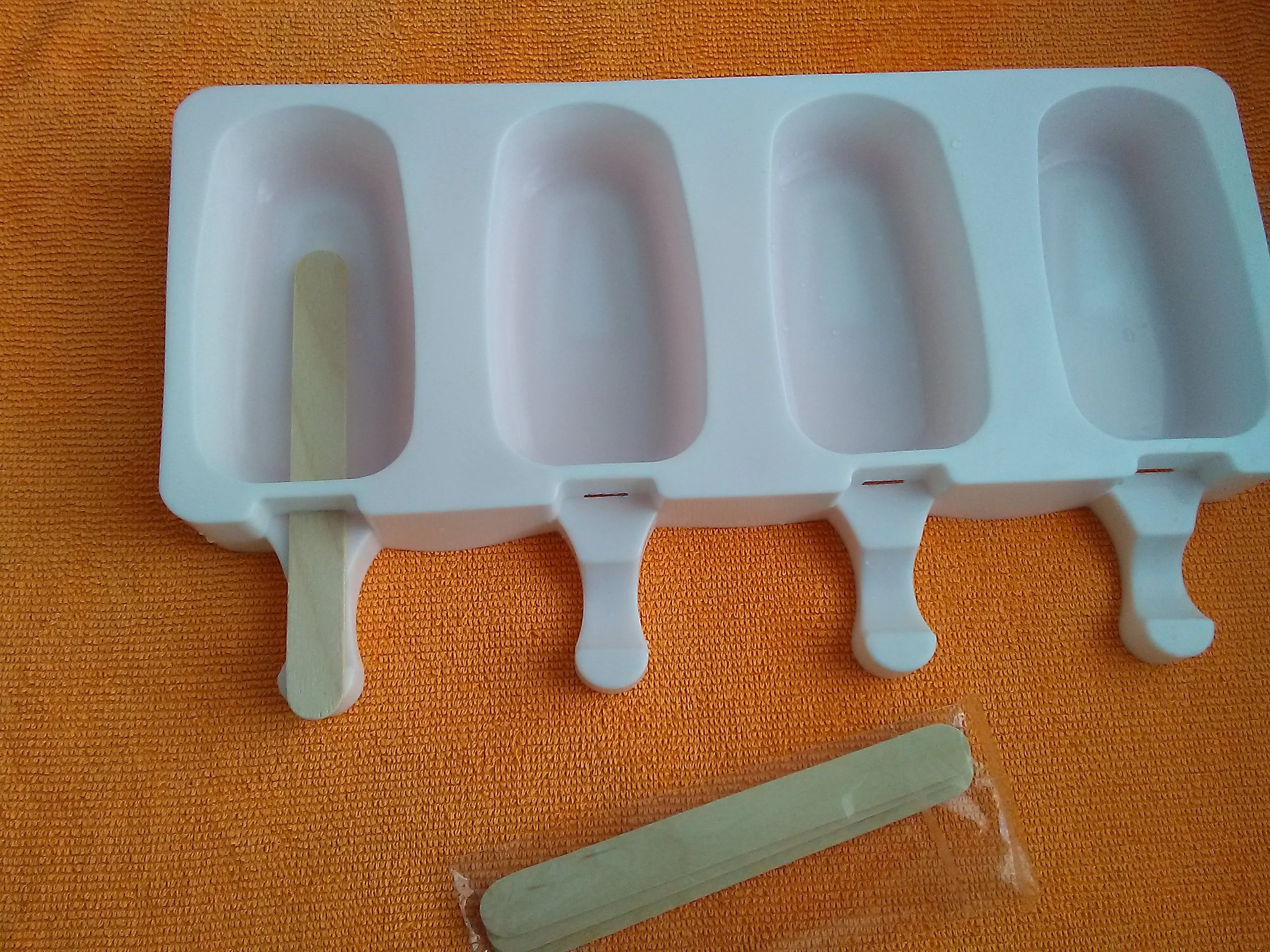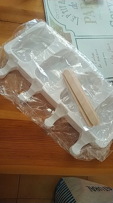 Доставка 6 недель до СПб, силикон белого цвета, без запаха, очень тонкий, поэтому надо класть на жёсткую поверхность или дошечку. Соответствует описанию. Жалко что нет крышки, если положить одну форму на другую, содержимое пачкает низ верхней формы, это не удобно и грязно. Мороженое получается и доставать его легко. Заказывала 2 формы, пришло 8 палочек.