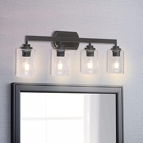 4-Gentle Indoor Tub Vainness Gentle Fixtures, Farmhouse Rest room Vainness Lights Wall Sconce Over Mirror Lamp for Home Bedside Kitchen, Oil Rubbed Bronze with Seeded Glass Shade Covers