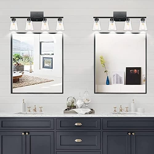 4 Gentle Matte Black Lavatory Self-importance Gentle Fixtures Over Mirror, 25 Inch Trendy Self-importance Lights for Lavatory with Clear Glass Shades, E26 Base Farmhouse Classic Industrial Wall Sconces, Exclude Bulb