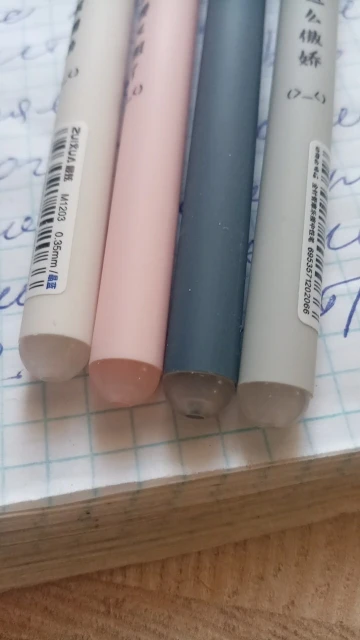 They write well, the pen feel is like velvety very nice. I ‘ve tried other 0.35 recharges and they’re going well, they can recharge.