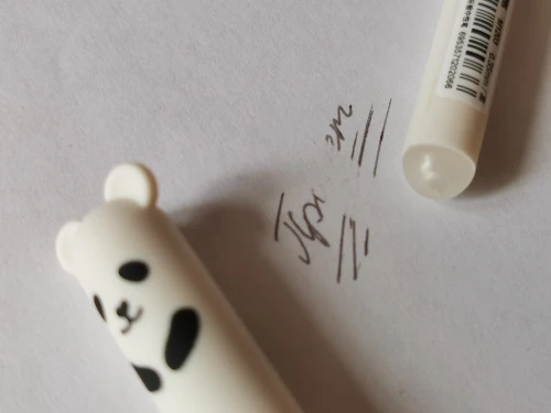 Very beautiful pens. The ink is more grey than black… I liked that you can erase it with a rubber on a back of pen. Soft and thin ball 🙂