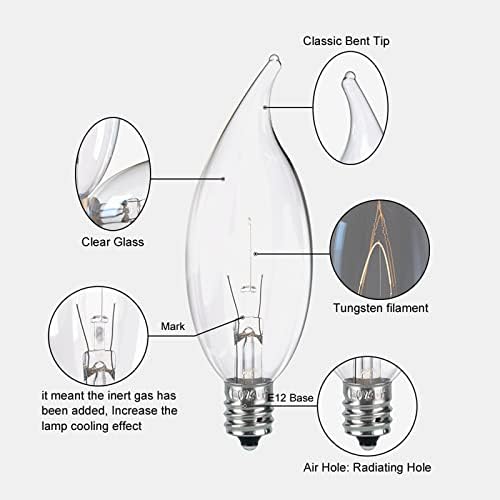 40 Watt Heat White Ceiling Fan Mild Bulbs C32 Chandelier Mild Bulbs Vivid and Lengthy Lasting 380 Lumen Bent Tip Mild Bulb with E12 Candelabra Base, 12 Packs