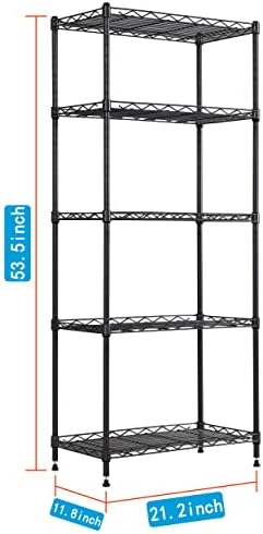 5-Wire Shelving Steel Storage Rack Adjustable Cabinets, Standing Storage Shelf Models for Laundry Toilet Kitchen Pantry Closet (Black, 21.2L x 11.8W x 53.5H)