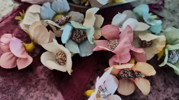 Tiny and pretty. They have a plastic tantrum to place them in a florist foam. Unfortunately, they’re no use to me for Scrap.